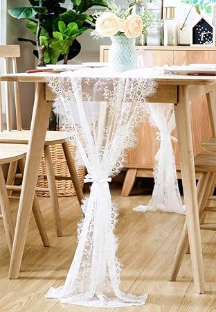 White Lace Table Runner Floral Table Cloth Rustic Boho Wedding Birthday Decor