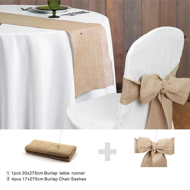 Rustic Theme Wedding Decoration Supply Contain Burlap Chair Sashes Jute Tie Bow Burlap Table Runner Burlap Lace Tableware Pouch In Party Diy