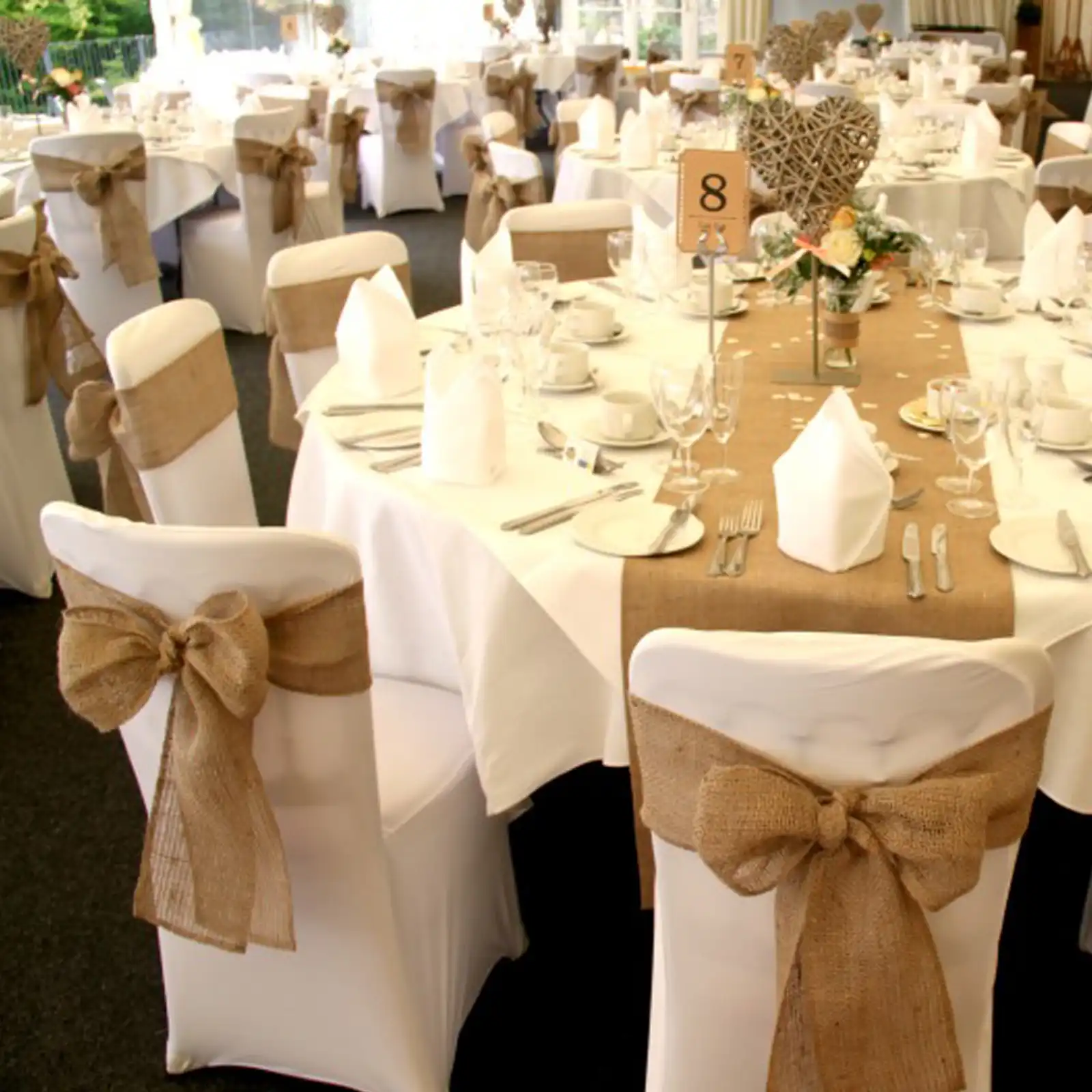 Rustic Theme Wedding Decoration Supply Contain Burlap Chair Sashes Jute Tie Bow Burlap Table Runner Burlap Lace Tableware Pouch