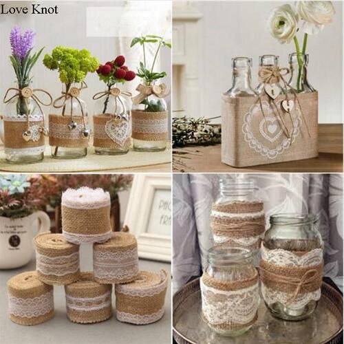2meter Pcs Width 5cm Jute Burlap Rolls Hessian Ribbon With Lace Vintage Rustic Wedding Decoration Ornament Burlap Wedding Favor