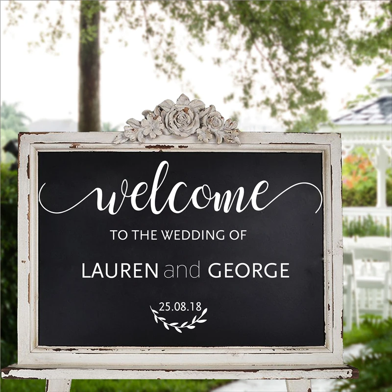 Us 7 98 25 Off Wedding Welcome Sign Board Vinyl Decal Rustic Wood Wedding Decor Stickers Personalized Custom Waterproof Sticker Modern Lc839 In Wall