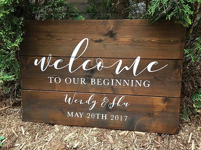 Wedding Welcome Sign Stickers Rustic Wood Wedding Decor Decal Personalized Vinyl Sticker S701