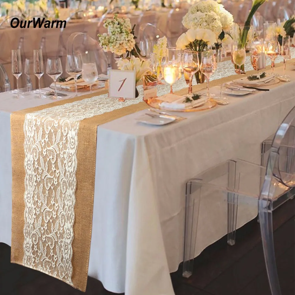 Us 5 73 40 Off Ourwarm 30x108cm Natural Burlap Table Runner Rustic Wedding Decoration White Lace Table Cloth Cover Home Banquet Party Supplies In